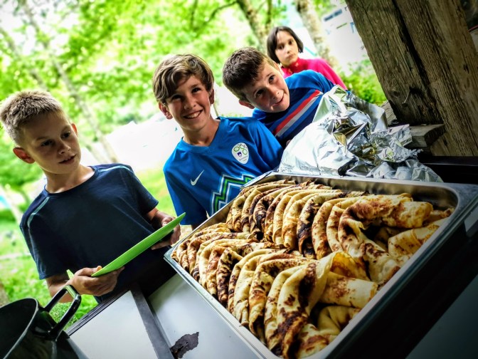 Sam sem skušal vsak dan nasititi male volkce, ki so se vrnili v tabor s hrano, ki sem jo pripravljal s pomočjo treh gorilnikov in plinskega žara. Družbo mi je delala Urška, ki je letos zamenjala Matjaža in bila glavna pomočnica v kuhinji.